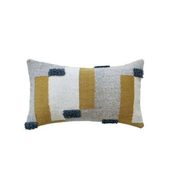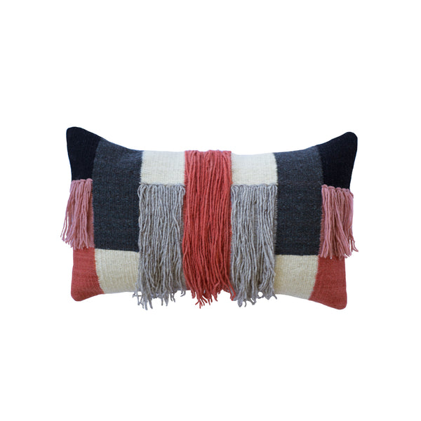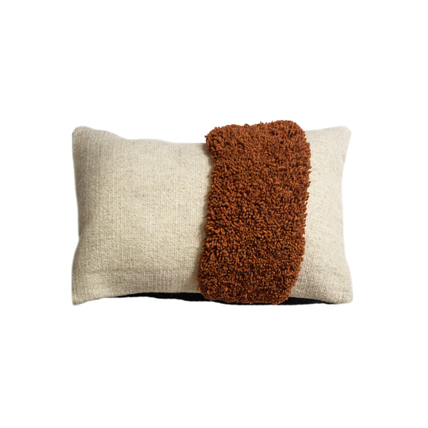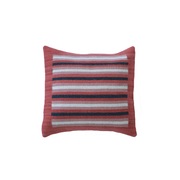 Cada cojín está tejido en telar de pedal y teñido a mano con tintes naturales, preservando técnicas ancestrales.