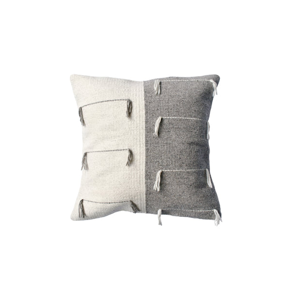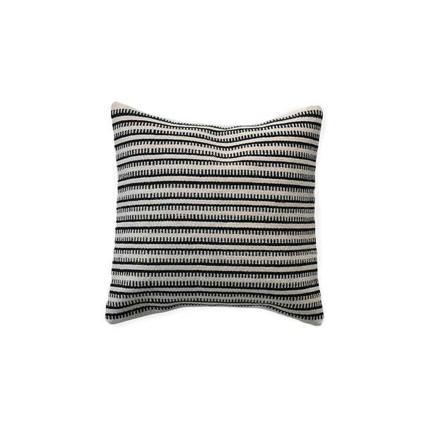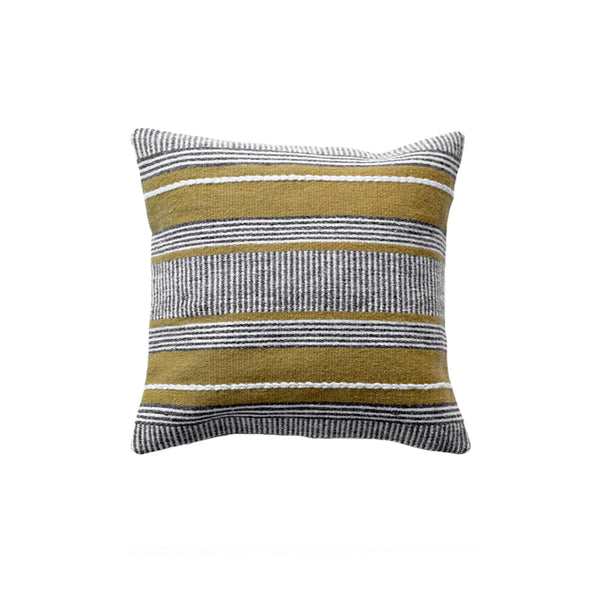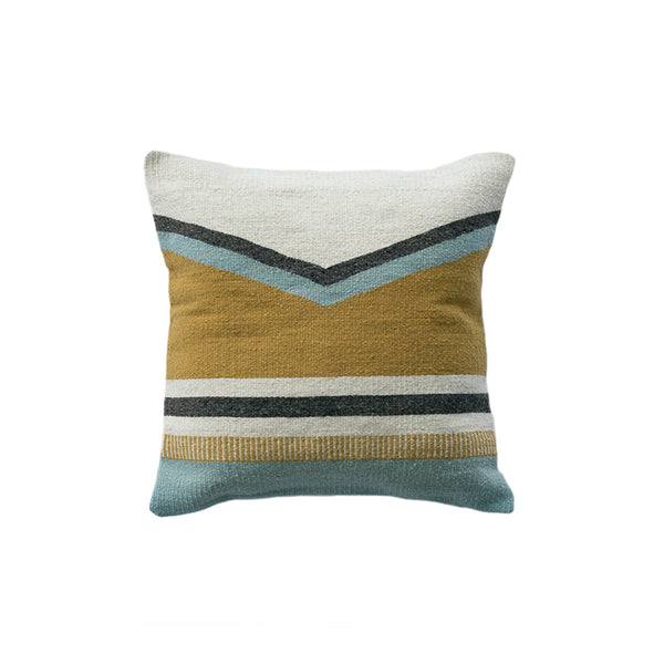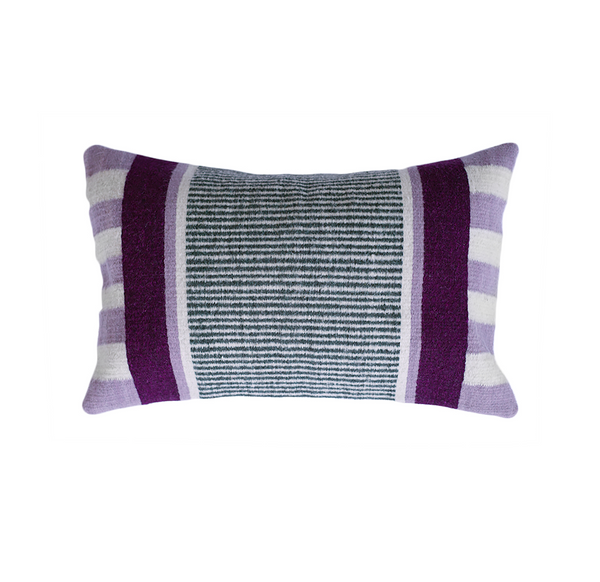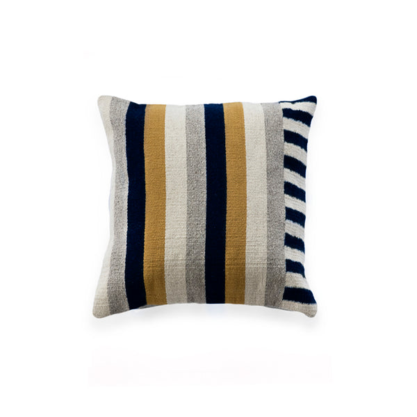 Cada cojín está tejido en telar de pedal y teñido a mano con tintes naturales, preservando técnicas ancestrales.